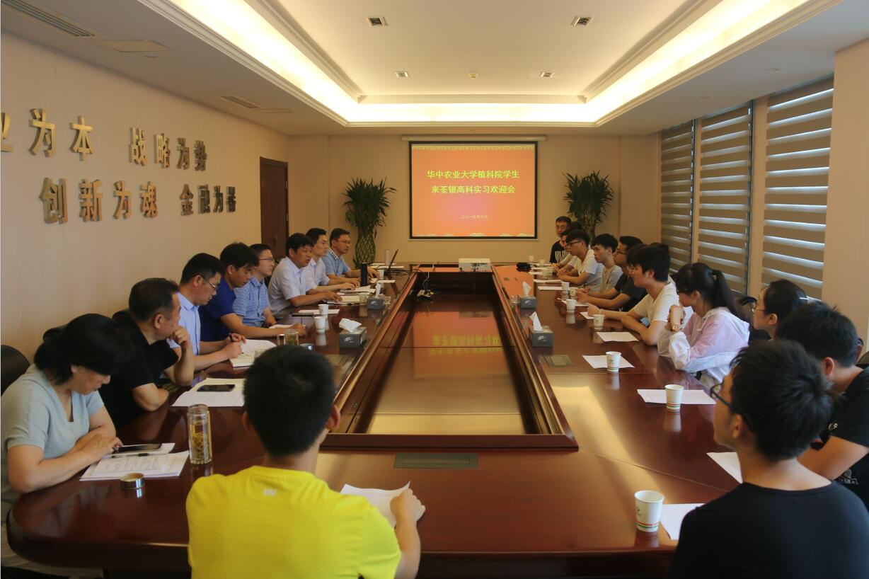 ??? 2019年7月8日,公司迎來了華中農(nóng)業(yè)大學(xué)植物科學(xué)技術(shù)學(xué)院14名實習(xí)生,并舉行了歡迎會。公司副總經(jīng)理、首席技術(shù)官張從合研究員,工會主席、辦公室主任鄭滿生,總經(jīng)理助理王自生等領(lǐng)導(dǎo)和實習(xí)生用人部門負責(zé)人參加。
